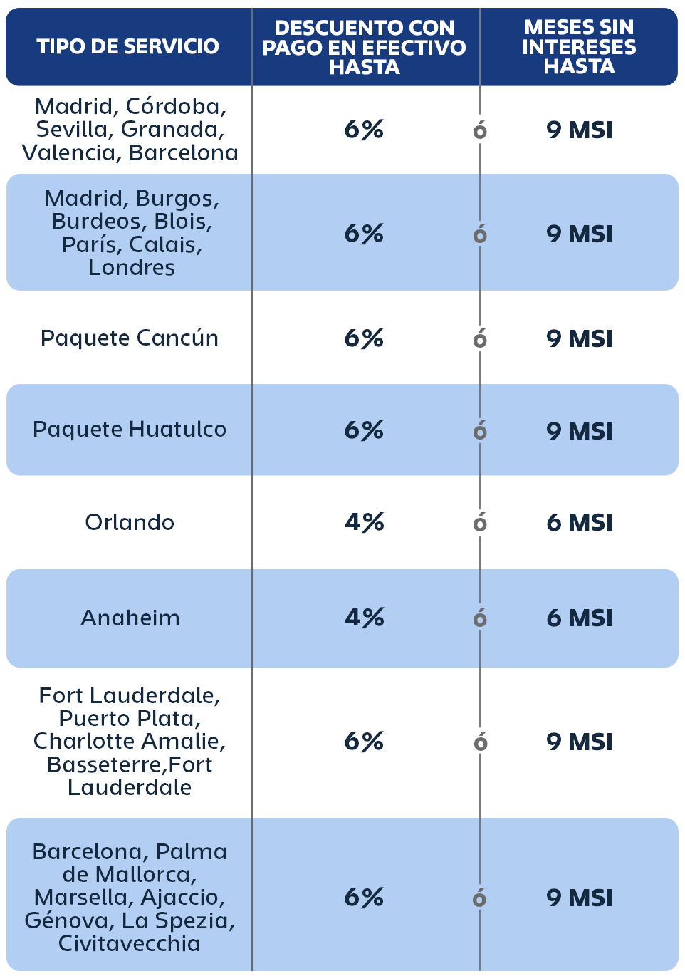 •Consulta otras promociones de productos participantes con asesor de viaje. Aplica solo vía Contactcenter y Whatsapp. Consultar Bancos y Tarjetas participantes.